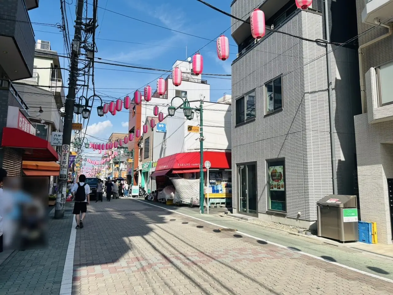 商店街にはピンクの提灯がずらりと並び、そこここに法被を着たいなせな祭り人とお神輿が出ています。楽しいなぁ♪