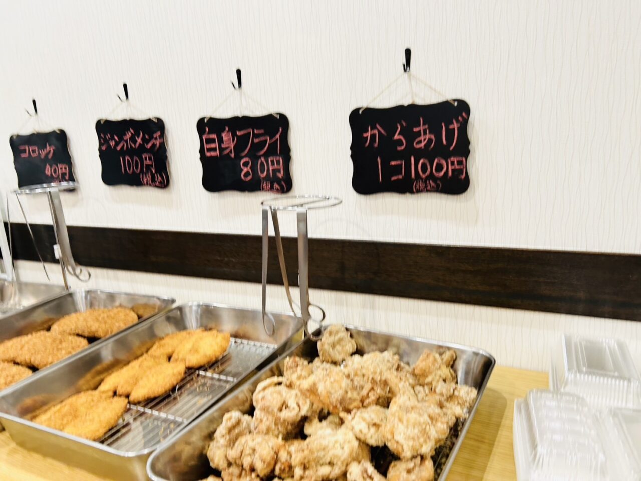 からあげに白身フライ、お総菜も種類豊富です。奥さんがおひとりでお店に立たれていましたが、お弁当も作られているのでしょうか? てきぱきと接客しながら、楽しいおしゃべりでほがらかな雰囲気があふれています。