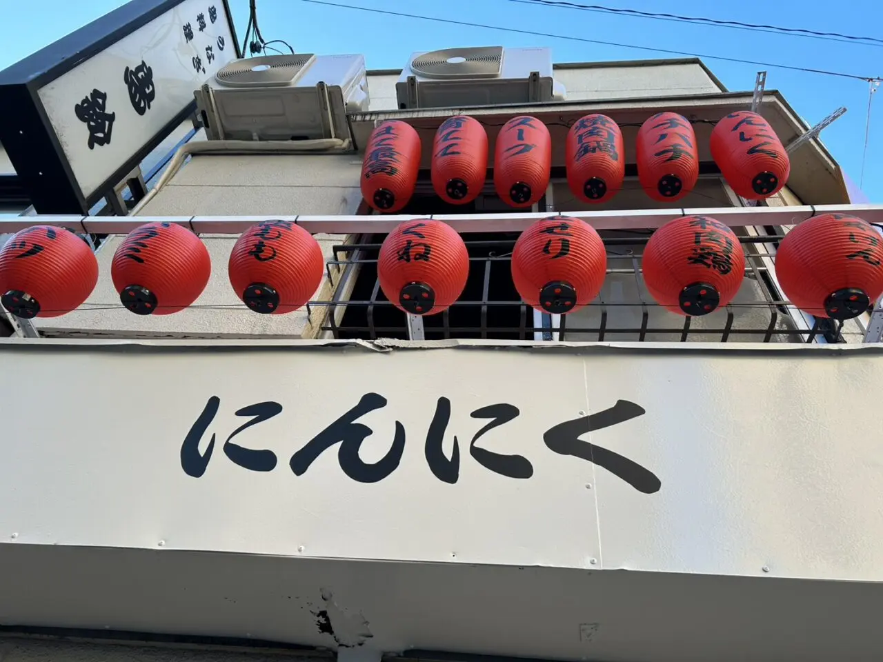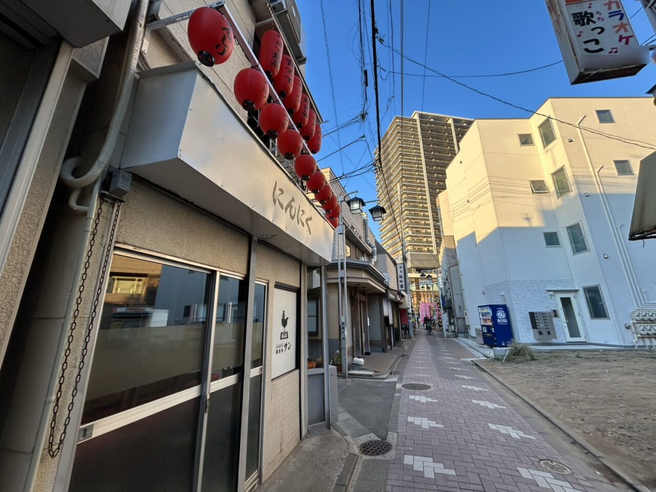 開店準備中なのは「にんにく鶏焼肉サン」。もと「もつ焼 松ちゃん」のあったところですね。
