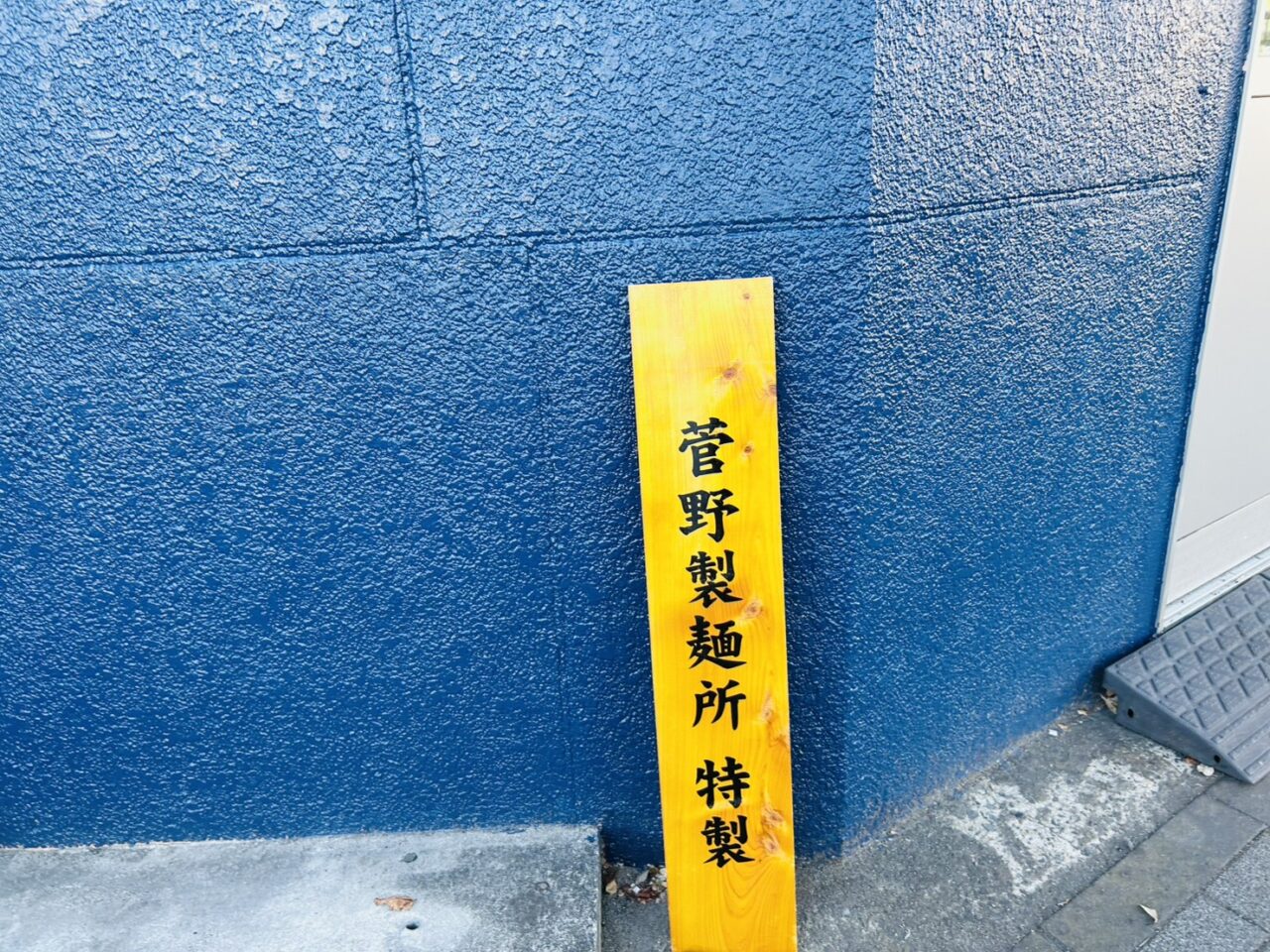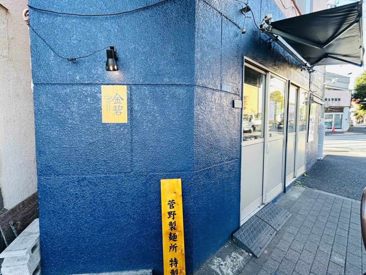 「金碧」「菅野製麺所 特製」、黄金色の看板には、どんぶりらしきイラスト…。