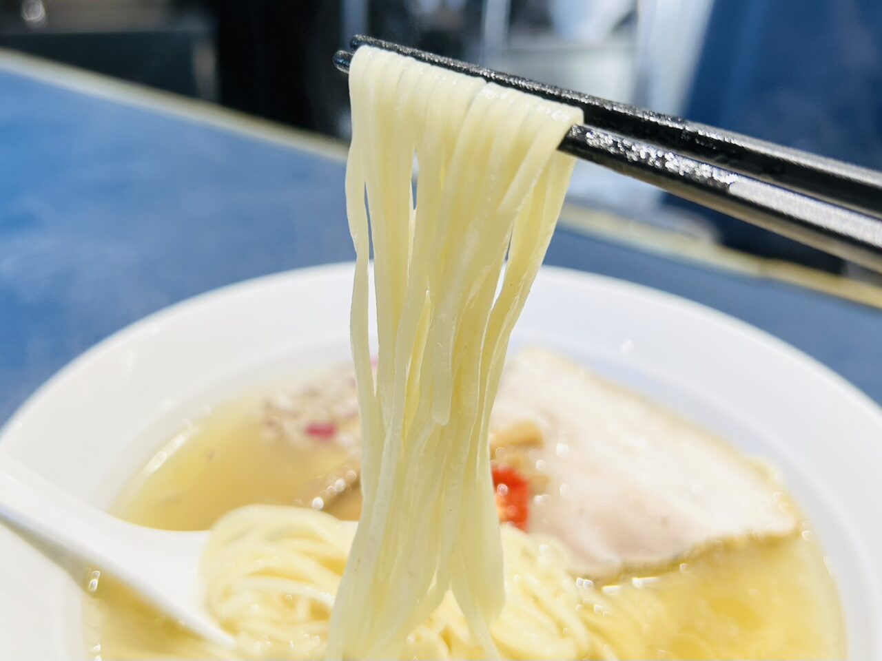 「金碧」の塩ラーメンはつるつるの細ストレート麺