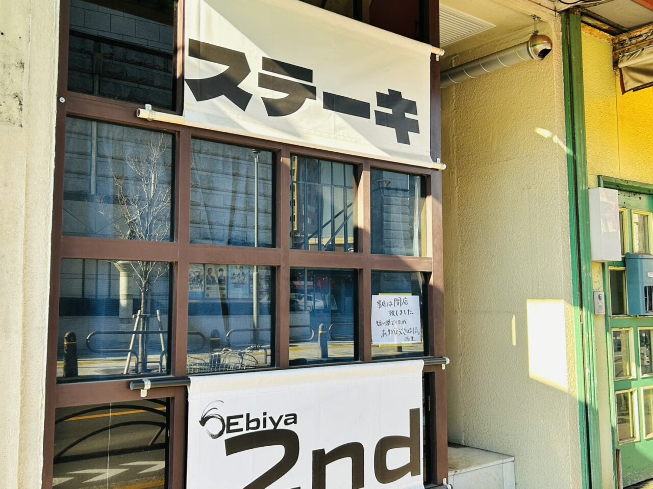 「Ebiya 2nd」さん。洋食「BIRDIE」から鉄板酒場「ゑび家」となり、それから約1年半でいったん閉店、その後ステーキ店として生まれ変わりました。