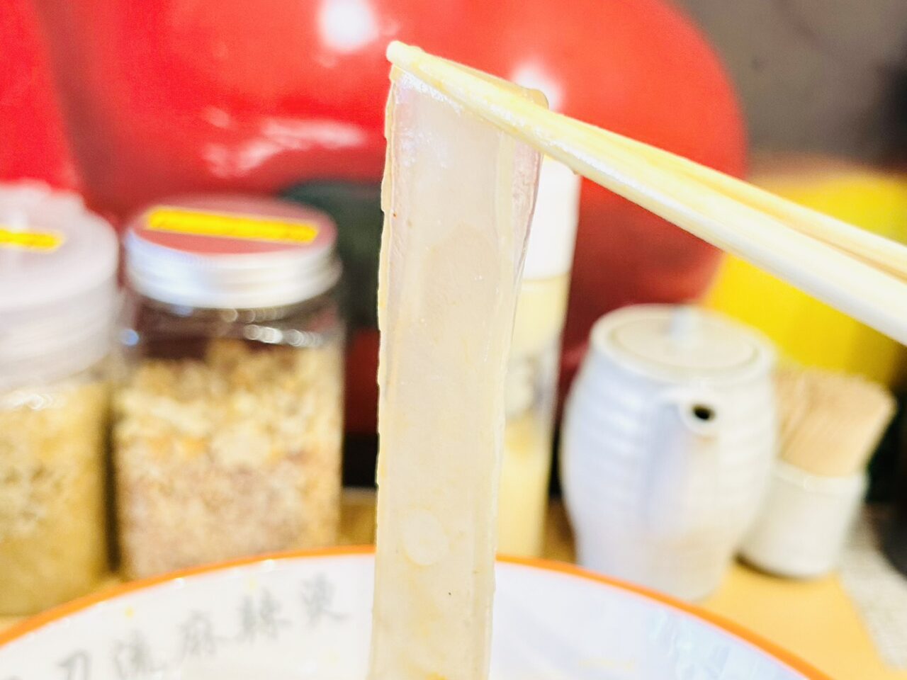 そしてスープを一口。「麻辣」の「麻」はしびれる辛さの花椒のこと。そのとおり、小辛にもかかわらずしっかりシビ辛いです。しかしもちろん、辛いだけじゃなく複雑で濃厚な味わい。