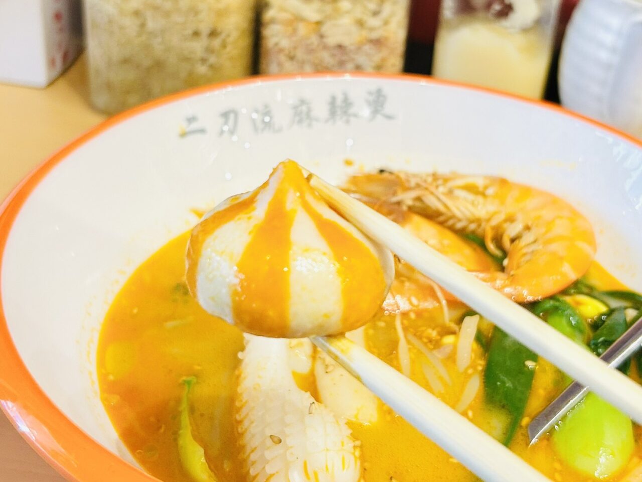 魚のすり身で魚卵などを包んだ、麻辣湯の定番具材なんだそうです。見た目はしましまのスライムのようなのに、実はうま味の爆弾…侮れない!