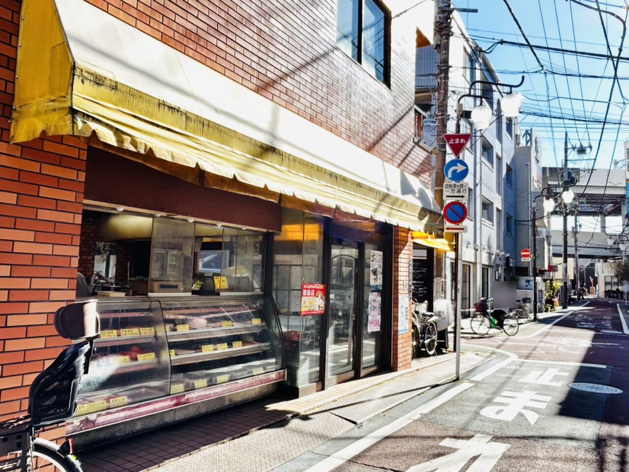 こちらは青砥駅から北に、駅前の商店街・青戸サンロード商店会を環七方面へ数分歩いたところ。このショートケーキのような形の建物が「赤堀精肉店」さんです。
