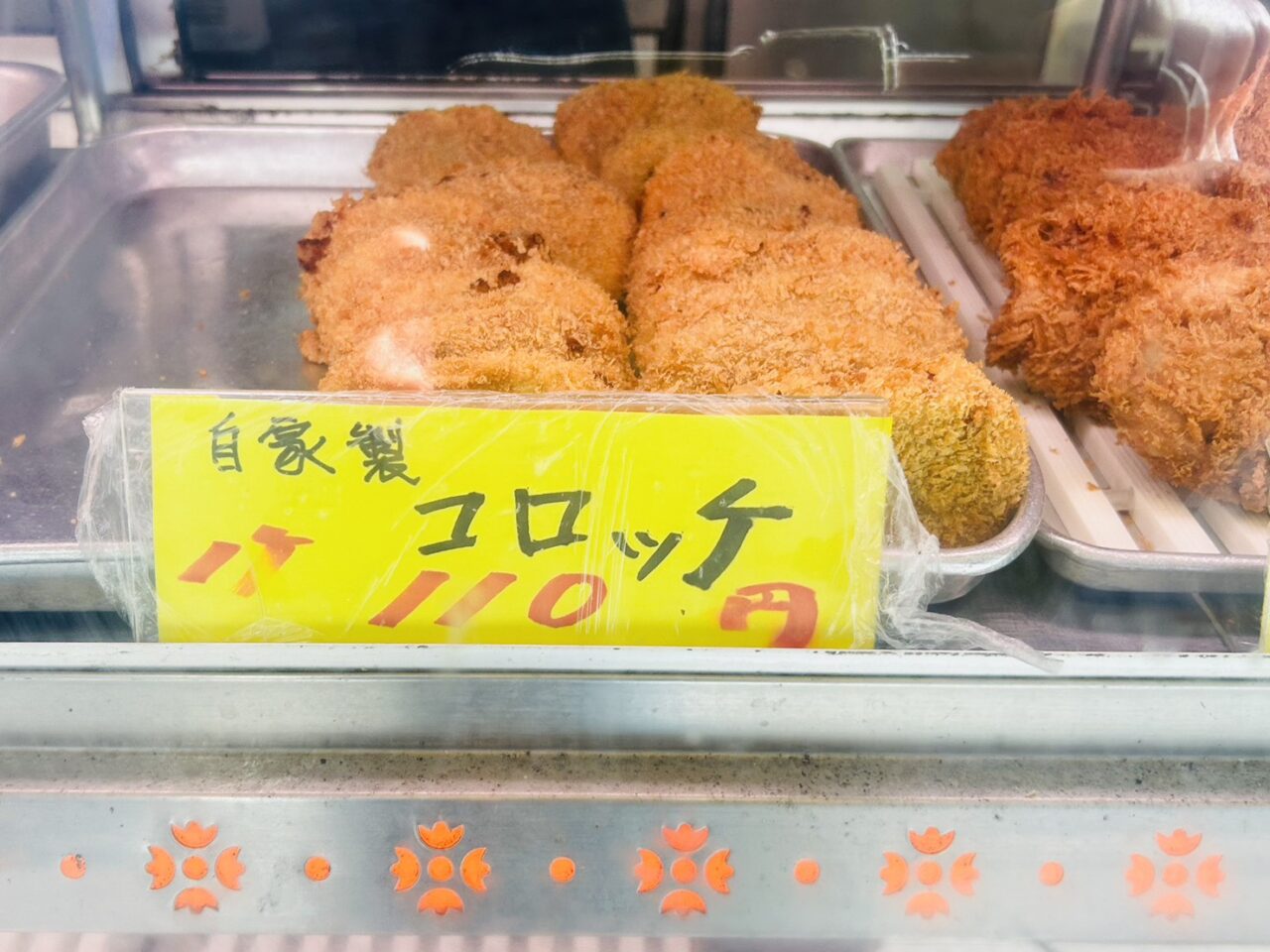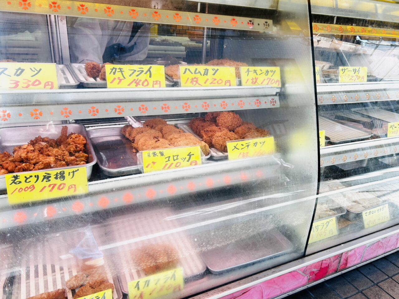 おお、ありますあります。ショーケースにはこんがりきつね色の揚げ物がいっぱい。