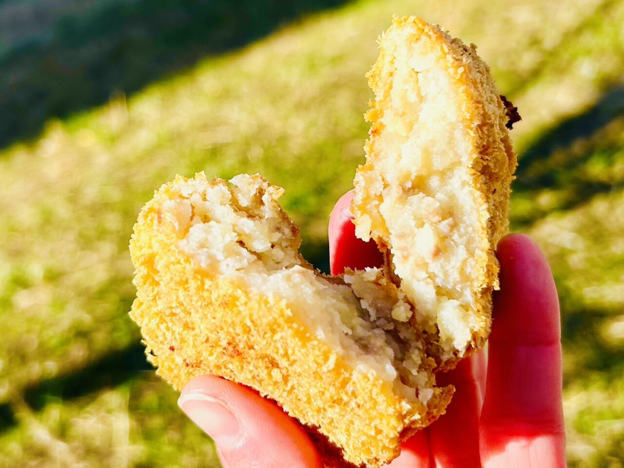 半分に割った赤堀精肉店のコロッケ