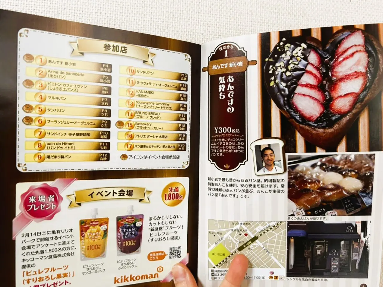 パンフレットにはかわいいチョコとフルーツのパンがいっぱい! みなさんの推し店舗はどんなパンでご参加ですか?