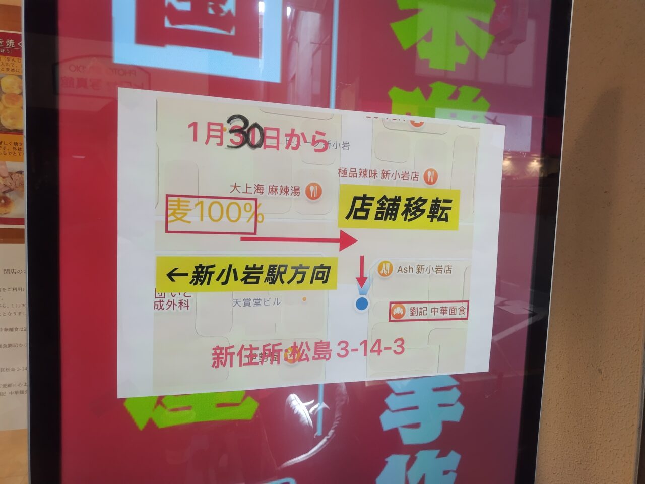 新小岩駅南口ルミエール商店街の麦100%が1/30で閉店されるとのことです。