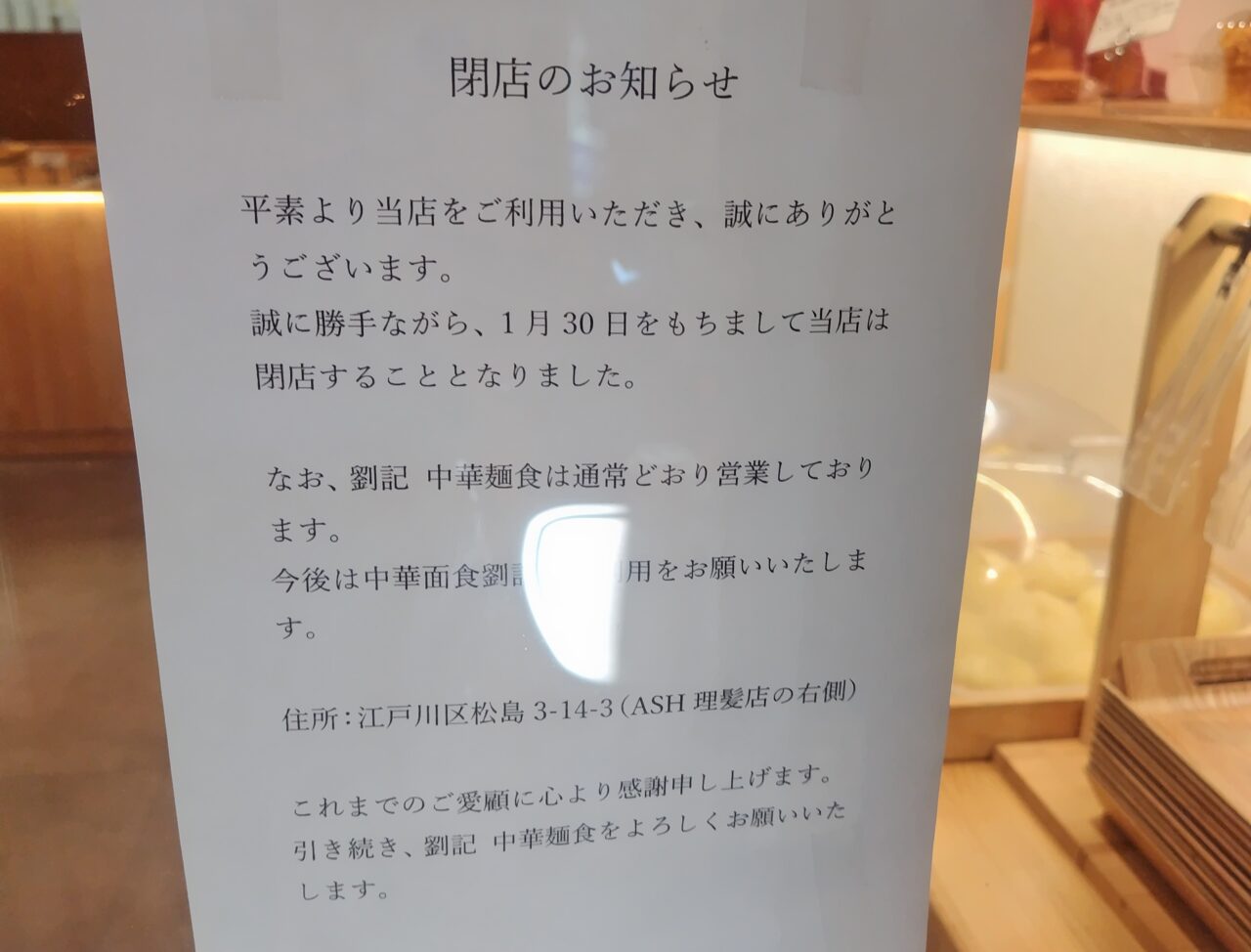 筆者も新店ハントにお邪魔して、初めていただく中華なパンに舌鼓を打ったものでしたが、何と、そちらに閉店のお知らせが出たそうなんです…。