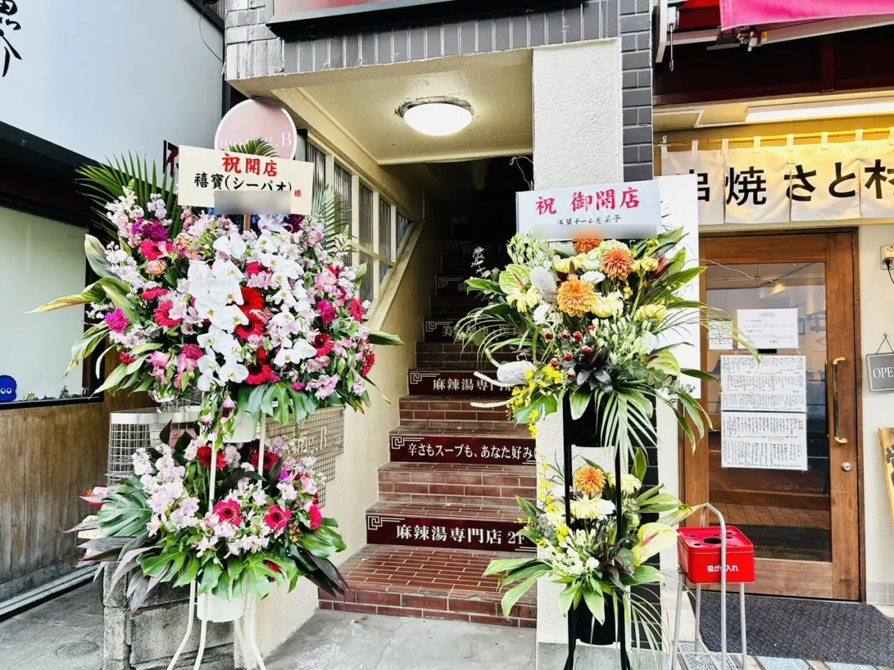【葛飾区】金町理科大商店会にお祝いのお花いっぱい!「麻辣湯専門店 禧寳(シーパオ)」オープンしています