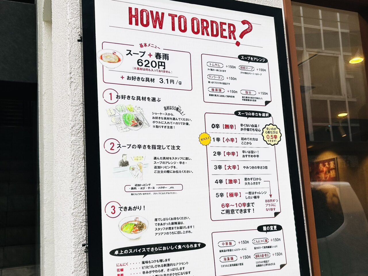 「七宝麻辣湯」店頭のオーダー看板