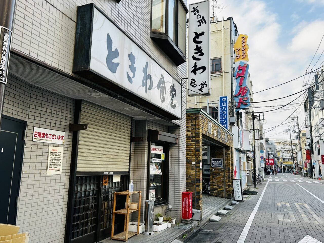 商店街の真ん中なのに2車線の、広めの通り沿いにあるのが「ときわ食堂」。