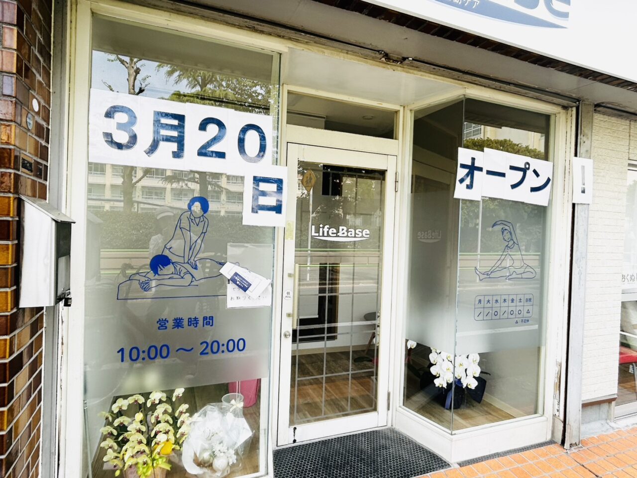 こちらが「Life Base ~整体&運動ケア~」さんですね。オープン日は2026年3月20日(金・祝)でした。